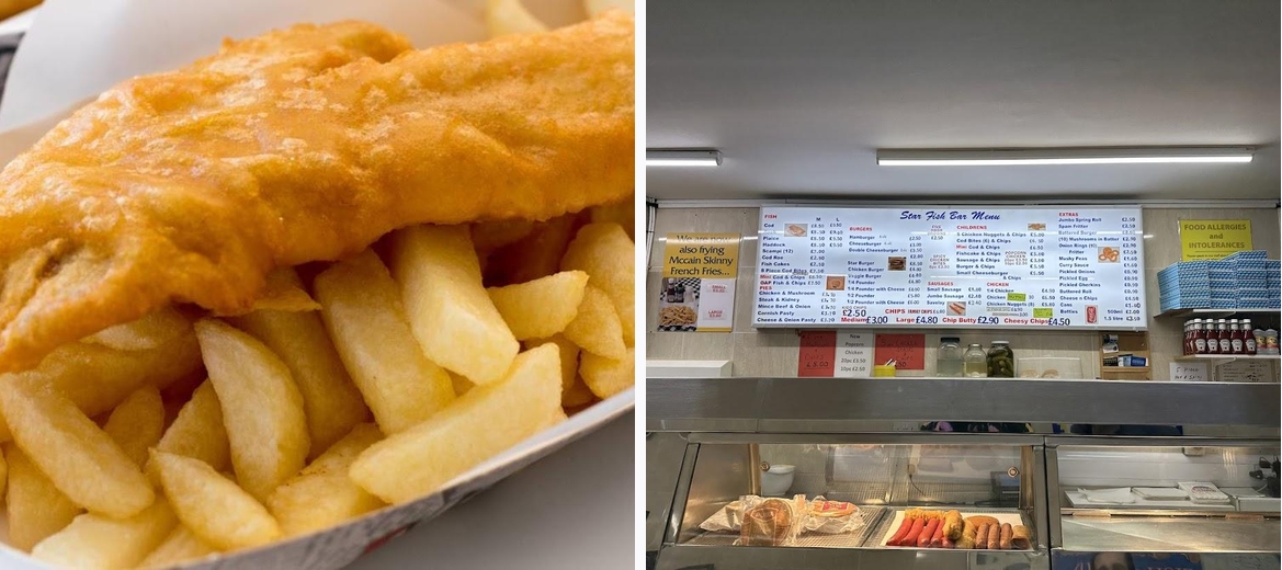 Discover Starfish Bar in Herne Bay for the best fish and chips takeaway. Enjoy our crispy batter and fresh cod, all with a seaside view! Indulge in halloumi fries and treat yourself to a fried Mars bar. Affordable prices, friendly chat, and the perfect spot for a beachside drive await you!